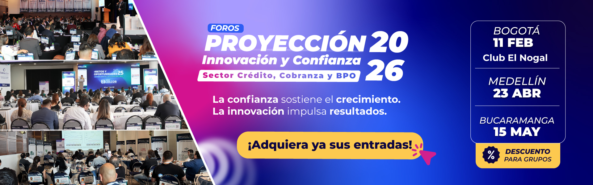 COLCOB es una entidad sin ánimo de lucro que impulsa el desarrollo e innovación y consolidación ética de las actividades del sector a través de las mejores prácticas en cobro de cartera, protección de datos personales, capacitación en cobranza y servicio al cliente. Generamos espacios académicos con contenido relevante y actualizado (congresos, foros, conversatorios, seminarios, webinars) que promueven el crecimiento de la industria. Contamos con el único Sello de Calidad, especializado en Cobranza.